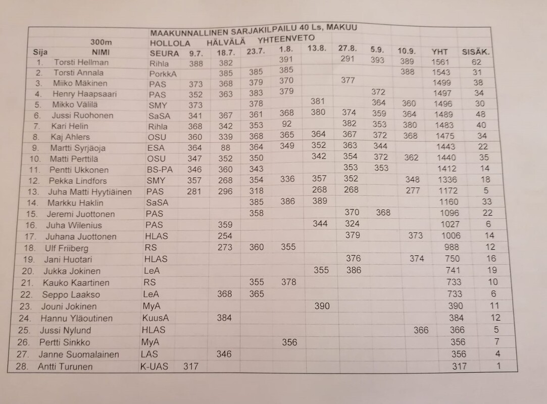 Maakunnallinen 300m sarjakilpailu Hellmanin voittoon