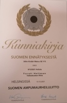 Rihlan Torsti Hellman laittoi Hollolassa syyskuussa Kivääri 300m Y75 sarjan SE lukemat uusiksi. Tulos 393.
